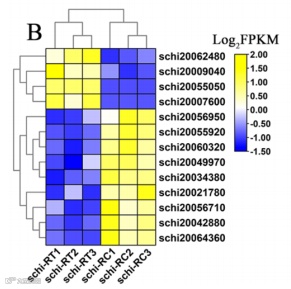基因表达热图(Gene Expression Heatmap)也是一种常见的数据可视化方法,用于展示基因在不同样本(不同品种,不同组织)或条件下的表达水平。热图通常以矩阵的形式呈现,其中每行代表一个基因,每列代表一个样本或条件。矩阵中的每个单元格的颜色表示该基因在对应样本中的表达水平,颜色的深浅或色调的变化反映了表达量的高低。