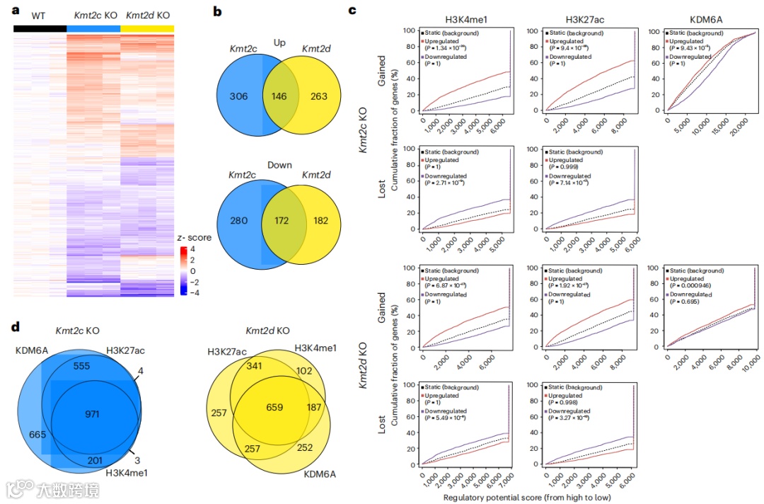 Fig4.KDM6A和组蛋白重塑与Kmt2c KO和Kmt2d KO的转录组学变化相关