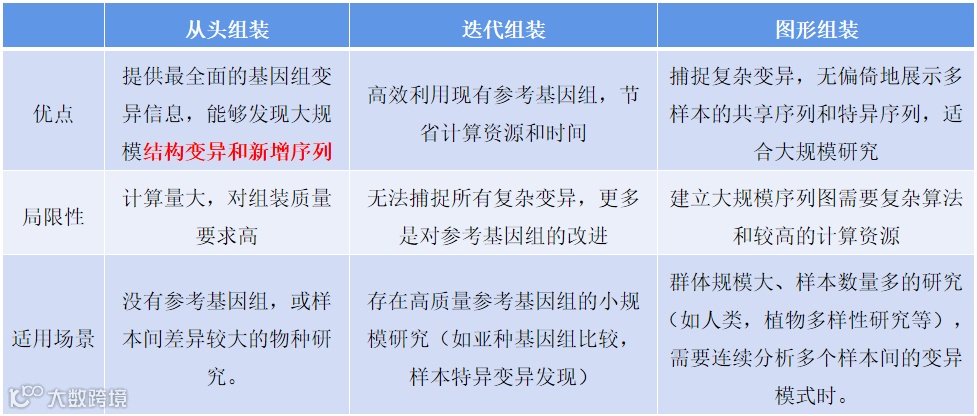 泛基因组的构建主要有三种方法:从头组装、迭代组装和基于图的组装。以下图为例,解释相关构建原理。