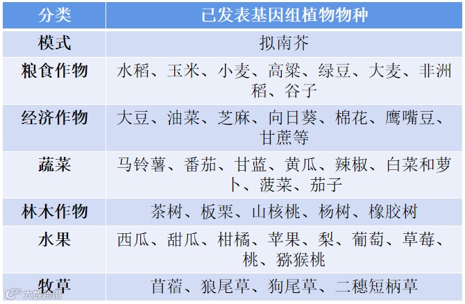 进行泛基因组基因家族分析的前提是已有发表的泛基因组。据不完全统计,目前已发表过泛基因组的植物有如下物种:
