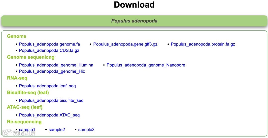 该数据库可以使研究人员能够轻松访问杨属超级泛基因组中任何物种的泛基因类型和特定基因的功能注释。该数据库还支持在物种内及跨物种搜索直系同源和旁系同源基因,从而高效探索多个基因组中的结构变异(SVs)。另外,这个网站还支持下载杨树物种的多种组学数据。