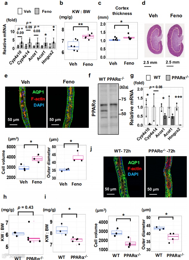 图9.PPARα可以调节近端肾小管中的细胞大小