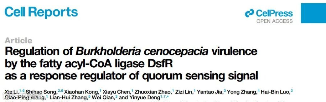 近日,中山大学深圳校区药学院(深圳)邓音乐教授研究团队在Cell Reports上发表了题为“Regulation of Burkholderia cenocepacia virulence by the fatty acyl-CoA ligase DsfR as a response regulator of quorum sensing signal” 的研究论文,该研究以伯克霍尔德氏菌为研究材料,揭示了脂酰辅酶A合成酶DsfR作为群体感应信号的响应调节因子,调控伯克霍尔德氏菌的毒性。研究结果进一步阐明了群体感应信号传导的机制,为研发新型抗感染药物提供了新的策略。爱基百客为该研究提供了ChIP-seq技术支持。