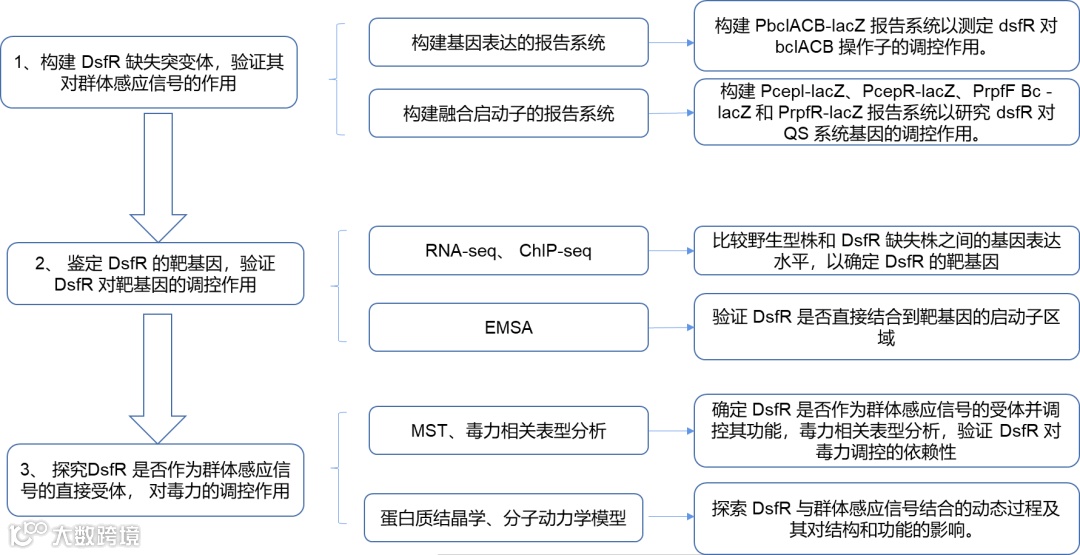 这篇文章研究了伯克霍尔德氏菌的毒力调控机制。通过研究脂酰辅酶A连接酶DsfR通过结合BDSF信号,其对靶基因启动子的结合,促进群体感知信号系统的活性,进而影响细菌的生物膜形成、运动性和毒力,从而调控其病原性。未来,可进一步探究DsfR在其他生理过程中的作用,并探索其作为潜在治疗靶点的可能性,以深入理解和应用细菌的毒力调控机制。
