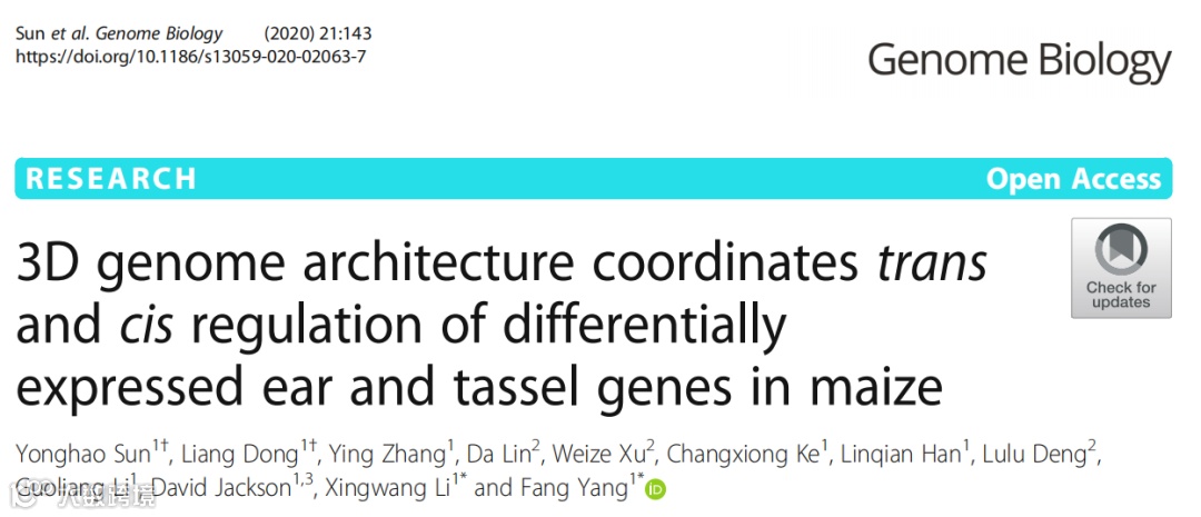 Sun Y, Dong L, Zhang Y, et al. 3D genome architecture coordinates trans and cis regulation of differentially expressed ear and tassel genes in maize[J]. Genome biology, 2020, 21: 1-25. -