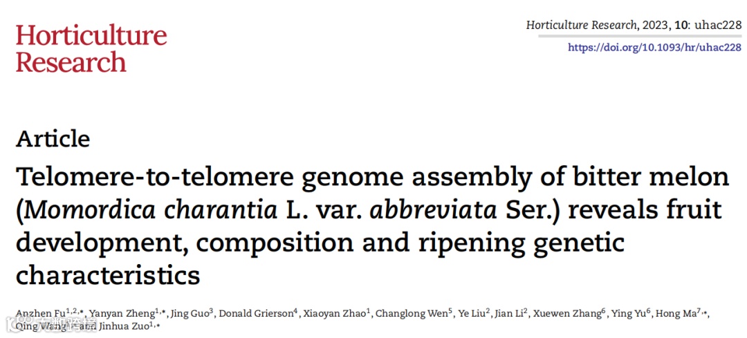 文献六:Telomere-to-telomere genome assembly of bitter melon (Momordica charantia L. var. abbreviata Ser.) reveals fruit development, composition and ripening genetic characteristics