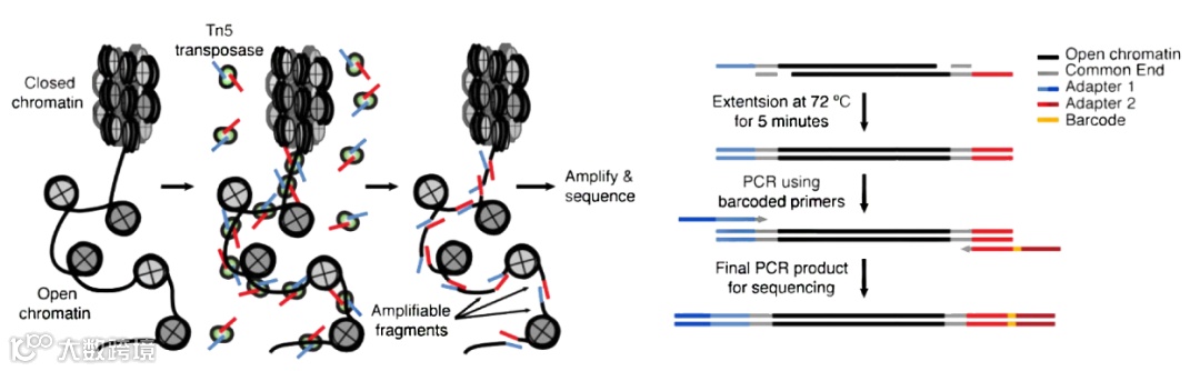 ATAC-seq广泛用于染色质开放性研究,该技术利用Tn5转座酶可以接近核小体疏松区域切割暴露的DNA,获得开放染色质区段(open chromatin),然后结合高通量测序和生物信息学分析来挖掘潜在的活跃转录因子及其靶基因,以此探究生物学相关问题。