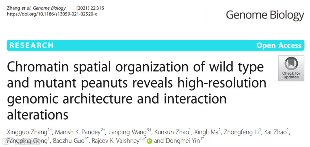 Zhang X, Pandey M K, Wang J, et al. Chromatin spatial organization of wild type and mutant peanuts reveals high-resolution genomic architecture and interaction alterations[J]. Genome Biology, 2021, 22: 1-21. -
