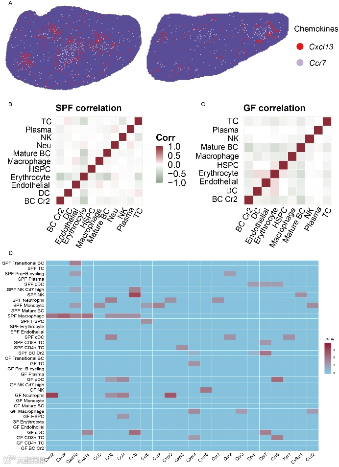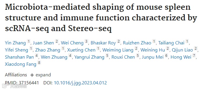 肠道微生物与宿主表现出复杂的相互作用,并在整个生命周期中塑造生物体的免疫系统。脾作为最大的次级淋巴器官,具有广泛的免疫功能。为了探索微生物群在调节和塑造脾脏中的作用,本文采用基于无菌(GF)小鼠的scRNA-seq和Stereo-seq技术检测了脾脏组织大小、解剖结构、细胞类型、功能和空间分子特征的差异。文章使用CARD对小鼠的空间细胞类型进行了共定位。