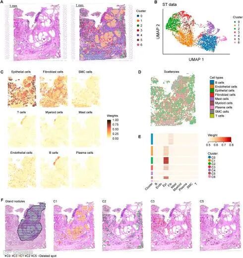 增生性结节形成是良性前列腺增生(BPH)的一个特征性病理特征,是前列腺体积增大和随之而来的下尿路症状(LUTS)的主要原因。其具体机制在很大程度上尚不清楚,尽管有报道称几个细胞过程参与了BPH的发生和发展,并强调了上皮细胞在增殖性结节形成中的关键作用。然而,技术限制阻碍了BPH患者的体内研究。本文采用稳健细胞类型分解(RCTD)方法整合空间转录组学和单细胞RNA测序图谱,从而阐明结节形成过程中上皮细胞的改变。