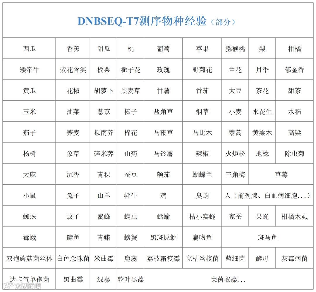 爱基百客已有DNBSEQ-T7实测数据表现优异,产出累计数据近1000T,物种经验近200种。