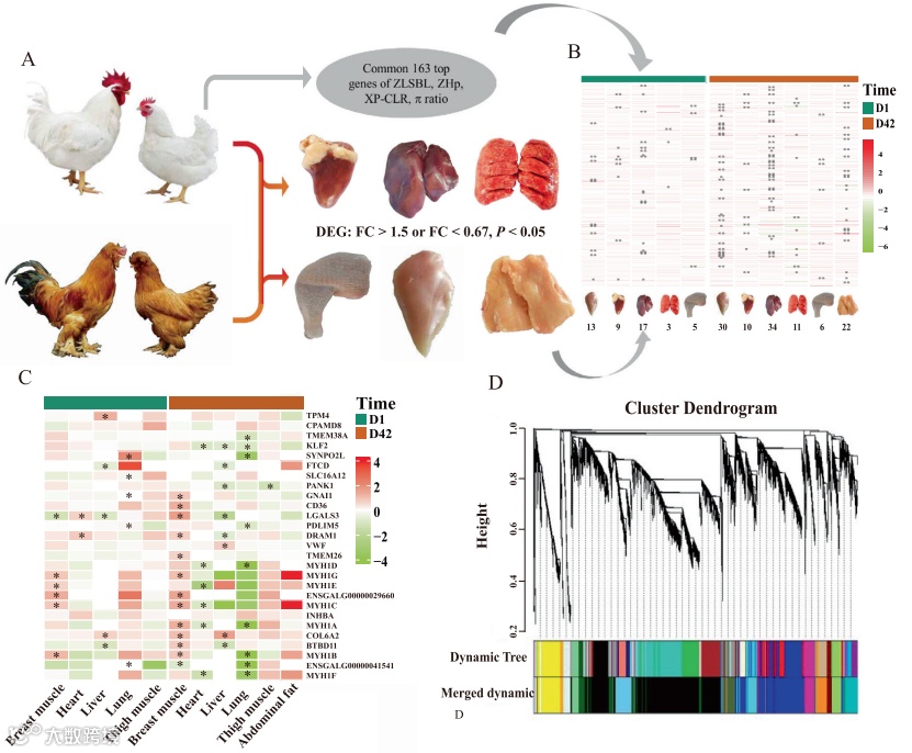 案例六:大规模的基因组学和转录组学分析阐明了鸡的高肉产量的遗传基础