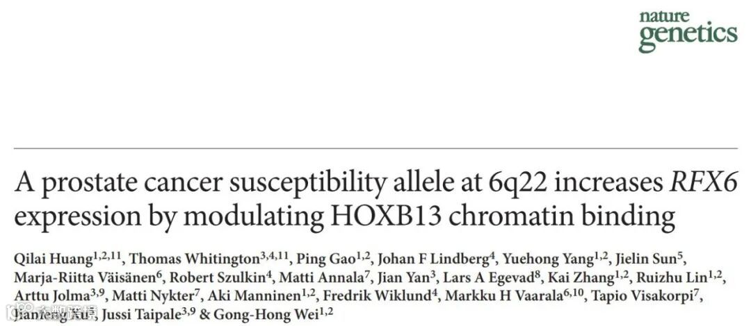本文作者发现了一个前列腺癌风险相关的SNP rs339331 (6q22)上的风险相关T等位基因,能够增强HOXB13与一个转录增强子的结合,使rs339331相关基因RFX6出现等位基因特异性上调。从而调控前列腺癌细胞的增生、迁移和入侵。该团队于2022年发表的“Extensive germline-somatic interplay contributes to prostate cancer progression through HNF1B co-option of TMPRSS2-ERG”也表明了转录因子调控与SNP之间的关系(17q12/HNF1B位点的多个SNP通过TMPRSS2-ERG (T2E) 融合转录因子调控HNF1B的表达)。