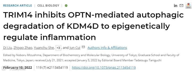 文章题目:TRIM14抑制OPTN介导的KDM4D自噬降解,以表观遗传方式调节炎症[3] -