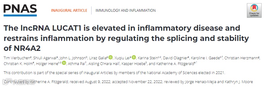 文章题目:lncRNA LUCAT1在炎症性疾病中升高,并通过调节NR4A2的剪接和稳定性来抑制炎症[5] -