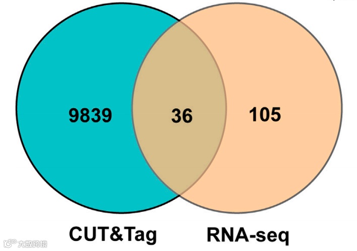 1. CUT&Tag关联基因和RNA-seq的差异表达基因进行overlap。