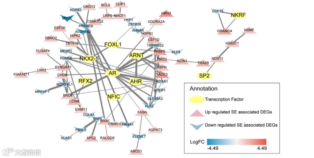 图:预测的转录因子及其与超级增强子SE相关的差异表达基因的相互作用。[3]