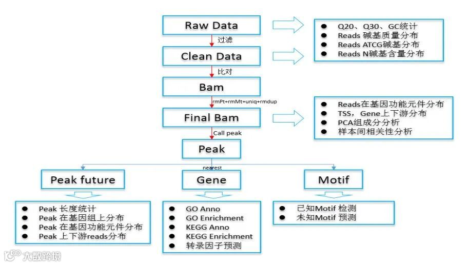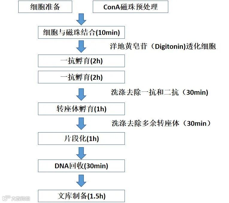 CUT&Tag实验流程较为简便,首先对样本进行处理,提取高质量细胞(核)。随后将细胞核固定在ConA磁珠表面,加入洋地黄皂苷(digitonin)透化细胞膜,依次进行一抗、二抗、转座体的孵育以及片段化,反应产物经过DNA提取、PCR扩增完成文库的构建。其中一抗在选择时要选择商业化ChIP抗体或标签抗体,二抗选择同种属与Protein A/G亲和力高的抗体。不同样本类型送样要求有差异,如有CUT&Tag检测需求的老师,欢迎联系我们的销售咨询细节。