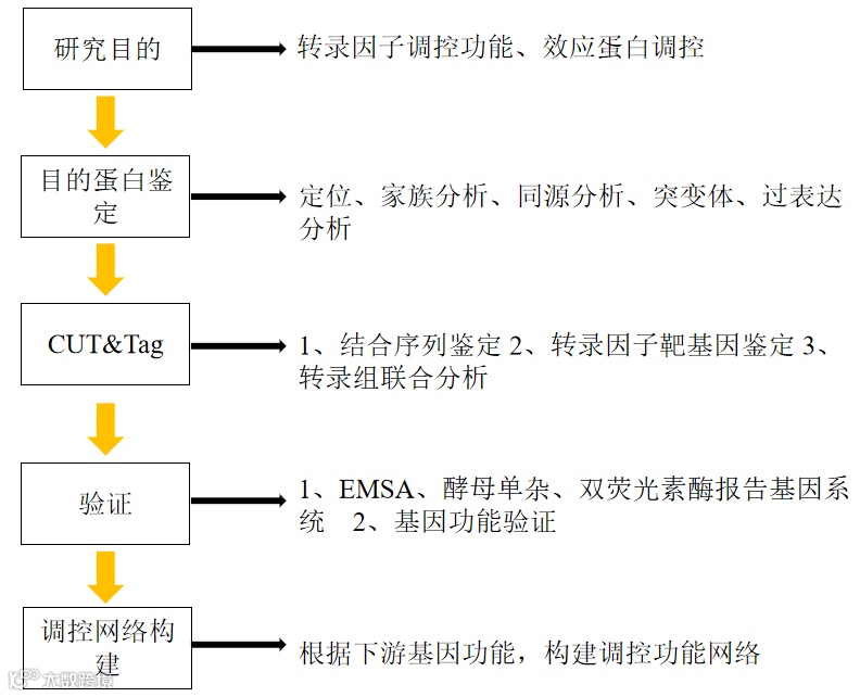 结合案例文章,我们可以学习如何利用CUT&Tag解析转录因子功能。首先,根据研究目的确定目的蛋白的特征,比如定位、家族分析、同源分析以及突变体功能分析等。然后,利用CUT&Tag寻找目的基因的靶基因,通常也会联合转录组进行相关基因的表达分析。最后,再结合EMSA、酵母单杂等进行验证。