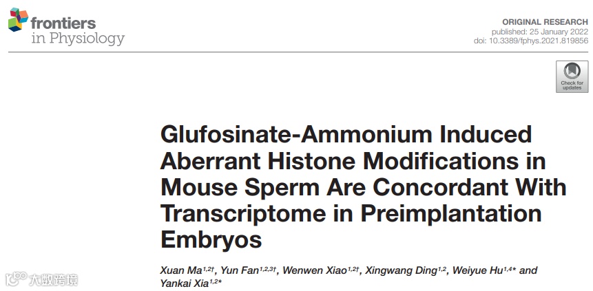 2022年1月南京医科大学在Front Physiol 发表题为“Glufosinate-Ammonium Induced Aberrant Histone Modifications in Mouse Sperm Are Concordant With Transcriptome in Preimplantation Embryos”的研究论文。该研究主要是借助CUT&Tag和转录组去分析小鼠在草铵膦处理前后组蛋白修饰的差异,及其对基因表达的影响。