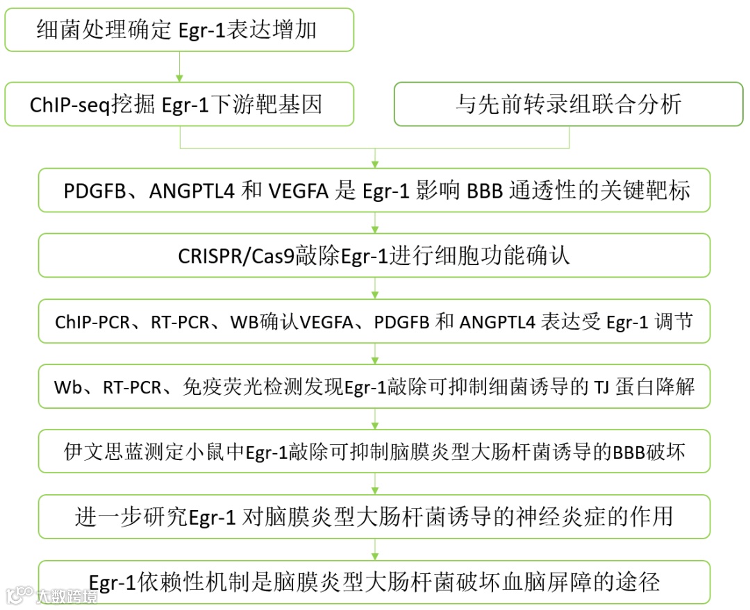 Fig 9.脑膜炎型大肠杆菌诱导Egr-1破坏BBB以及神经炎症反应的示意图