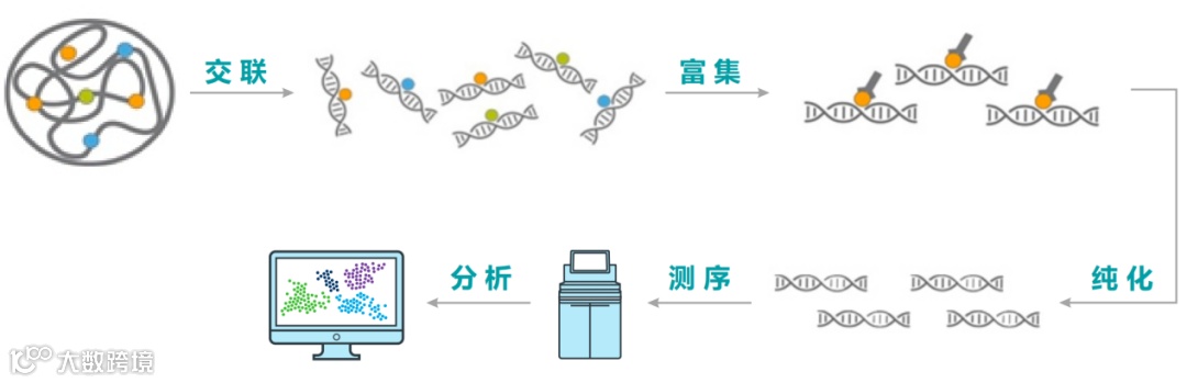 ChIP-seq历史最悠久,技术比较成熟稳定。它首先利用染色质免疫共沉淀技术特异性地富集目的蛋白结合的DNA片段,并对其进行纯化与文库构建;然后对富集到的DNA片段进行高通量测序。最后,利用生信分析在全基因组范围内获取与转录因子、组蛋白等互作的DNA区段信息。