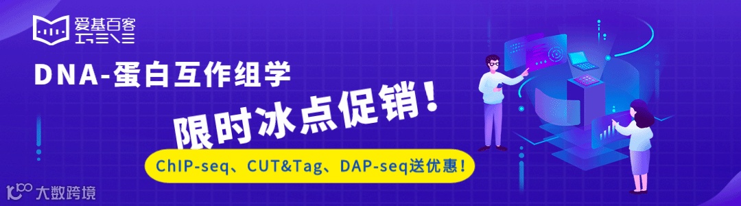 爱基百客专注于表观组学服务领域多年,提供从方案设计、样本制备、测序、生信分析以及后期验证一站式服务,本次案例分享中涉及到的多种技术我们均可提供。针对DAP-seq技术,我们已具备多个物种的相关项目经验,更多细节请联系区域销售工程师。ChIP-seq、CUT&Tag和DAP-seq正在做开学大促的活动,做DAP-seq送RNA-seq, 有需求的老师不要错过哦~