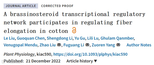 油菜素内脂(BRs)转录调控网络参与调节棉纤维伸长