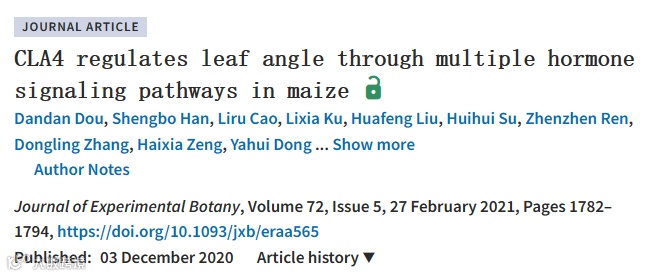 CLA4通过多种激素信号通路调节玉米叶角