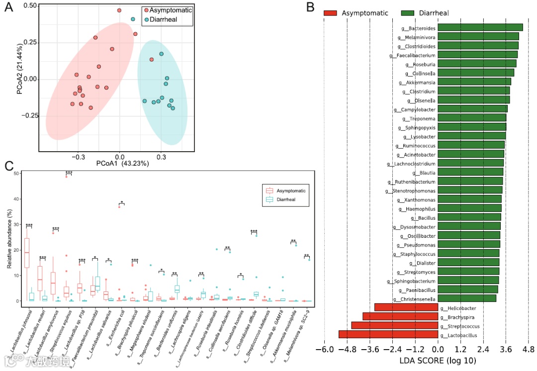 图. 慢性腹泻患者与无症状患者肠道微生物组组成