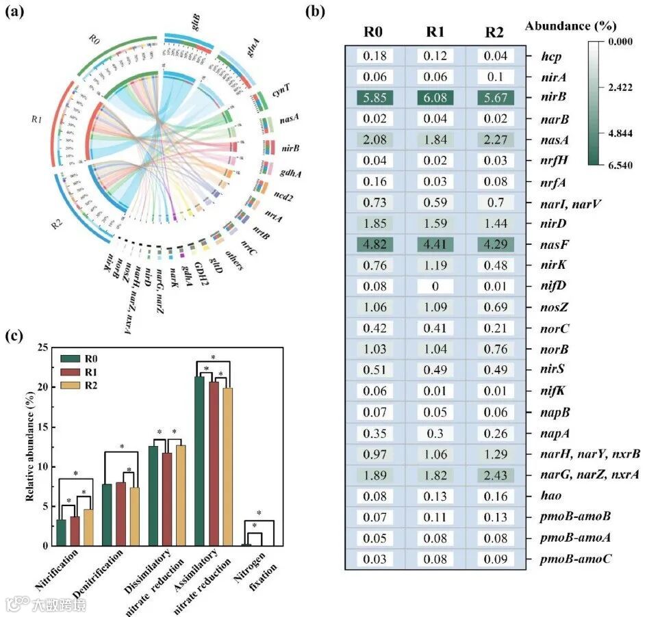 结果表明,1 mg/L的MPs和NPs对活性污泥系统的脱氮性能影响不大,而高浓度的MPs和NPs(20和100 mg/L)通过抑制氮转化过程,降低了总脱氮效率(13.4% ~ 30.6%)。MPs和NPs诱导的过多活性氧引起细胞毒性,表现为细胞膜受损和生物活性降低。宏基因组分析显示,MPs和NPs降低了反硝化菌(如中根瘤菌、红杆菌和Thauera)的丰度,同时降低了编码氮转化关键酶的功能基因(如napA、napB和nirS)以及与电子供体产生相关的基因(如mdh)的丰度,从而降低了脱氮效率。网络分析进一步阐明了塑料暴露系统中反硝化菌与反硝化相关基因之间的减弱关联,阐明了MPs和NPs通过抑制微生物对氮转化过程的贡献来抑制氮的去除。本研究为活性污泥系统中微生物群落结构和氮转化过程对微(纳米)塑料干扰的响应提供了重要的见解。