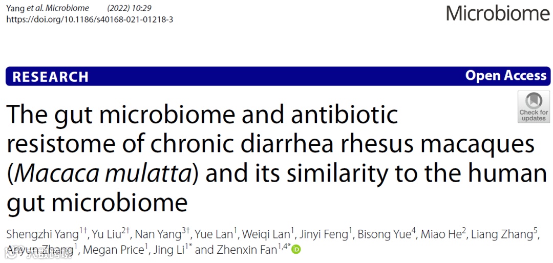 肠道微生物组成比较表明,几种圈养的非人灵长类动物(NHP)的肠道与非西化饮食的人类的肠道比西化饮食的人类的肠道更相似。慢性腹泻RM的肠道微生物组与农村生活的腹泻患者和非西化饮食的人相比,与无症状RM惊人地相似。该研究结果表明慢性腹泻显著改变了 RM 肠道微生物组的组成和代谢途径。抗生素的频繁使用导致慢性腹泻 RM 肠道微生物组的抗生素耐药性,对个体治疗和生存造成严重后果。