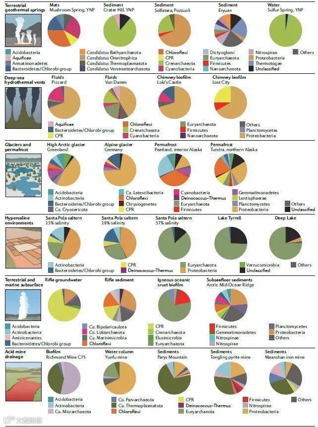 各种各样的微生物,包括许多新颖的、在系统发育上根深蒂固的分类群,在极端环境中生存和繁衍。这些独特而不复杂的生态系统为研究天然微生物群落的结构、功能和进化提供了巨大的机会。标记基因调查已经解决了这些极端微生物组合的模式和生态驱动因素,揭示了大量未培养的微生物多样性和古细菌在最极端条件下的优势。新的组学研究揭示了群落功能和环境变量之间的联系,并使得能够发现和基因组表征主要的新谱系,这些谱系大大扩展了微生物多样性并改变了生命之树的结构。