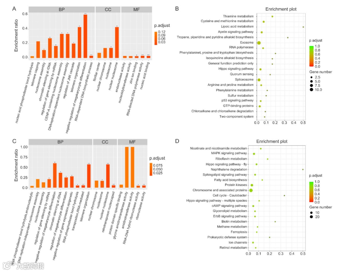 为了鉴定不同刺参颜色变种中MITF调控基因的差异,作者将MITF ChIP在紫色和白色刺参中鉴定的基因与在绿色刺参中鉴定的基因进行比较分析。然后,还对这些基因进行了GO和KEGG富集分析。与绿色刺参相比,紫色刺参显著富集的GO项有:巨核细胞分化的负调控、端粒组织、含有核小体组装的CENP-A、复制依赖性核小体组装以及靶向RNA的DNA聚合酶活性。相关的KEGG通路包括硫胺素代谢、半胱氨酸和蛋氨酸代谢、脂酸代谢、apelin信号通路和p53信号通路。与绿色刺参相比,白色刺参差异结合基因显著富集的GO项有基因表达的负调控、巨核细胞分化的负调控、rDNA染色质沉默、巨核细胞分化的调控和端粒组织等。相关的KEGG通路包括烟酸和烟酰胺代谢、MAPK信号通路、核黄素代谢、hippo信号通路、cAMP信号通路和ErbB信号通路。