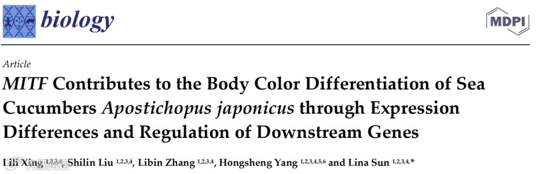 2022年12月20日,中国科学院海洋研究所海洋生态与环境科学重点实验孙丽娜研究员团队在期刊Biology发表题为“Cucumbers Apostichopus japonicus through Expression Differences and Regulation of Downstream Genes”的研究论文。微量邻苯二甲酸相关转录因子(Microphthalmia-associated transcription factor,MITF)是黑素细胞发育和黑霉素合成途径中最关键的基因之一。该研究选取3种颜色刺参作为研究对象,利用ChIP-seq技术挖掘MITF的调控基因,以此探索刺参体色形成和分化的分子机制。