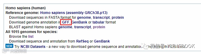 5、在找到具体物种基因组后,需要接着找到其对应注释信息,以homo sapiens为例: