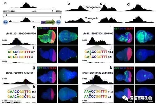 综合以上,发现Grh结合位点的变化可能会改变增强子区域在上皮细胞中的可及性。 为了测试这些区域是否确实是功能性增强子,克隆了四个增强子对,每个增强子对代表不同的SNP序列,一个具有影响Grh结合位点的caQTL,一个没有影响Grh结合位点的caQTL。 将这些区域分别克隆到GFP报告载体中并稳定整合到苍蝇基因组中的相同位置。