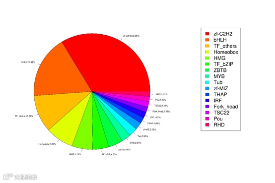 基于DNA结合结构域,将动物转录因子分成了73个基因家族,将转录辅助因子分成了83个基因家族。此外,动物转录因子分为六大类(Basic Domain Group、Zinc-Coordinating Group、Beta-Scaffold Factors、Helix-turn-helix、Other Alpha-Helix Group和Unclassified Structure),动物转录辅助因子也分为六大类(Co-activator/repressors、Chromatin Remodeling Factors、General Cofactors、Histone-modifying Enzymes、Cell Cycle和Other Cofactors)。