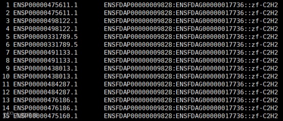 比对完成后可得到如下文件,第二列为预测的TF结果。