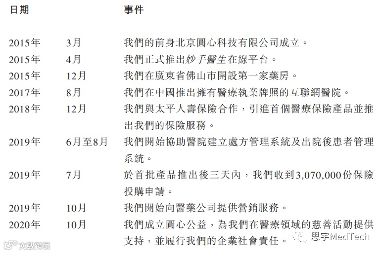 圆心科技于2018年通过与中国一家领先保险公司合作推出首个医疗保险产品,开展医疗产业端赋能服务。