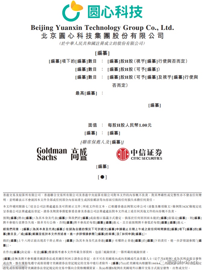 2月9日除夕当天,港交所官网显示,北京圆心科技集团股份有限公司(以下简称“圆心科技“)通过港交所聆讯,高盛、中信证券为联席保荐人。