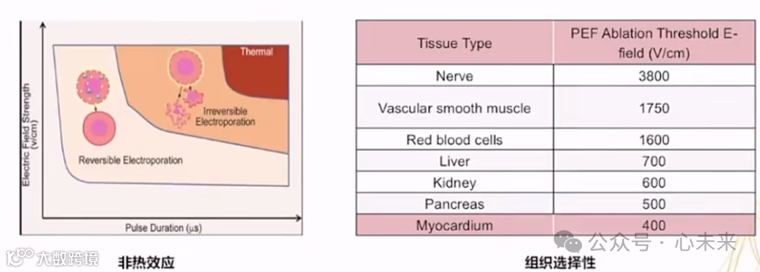 过去二十多年里,射频和冷冻两种能量成为消融领域的主流。但这两种能量都是组织非选择性的,可能导致邻近脏器的组织损伤,例如食管、隔神经或者肺等。一定的并发症风险、消融不足导致房颤复发的风险以及较长的学习曲线,让业内翘首以盼一种更安全、高效的消融技术。
