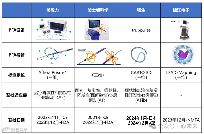 目前几家巨头争相扎堆破局,纷纷获得PFA产品的批准或临床进展: