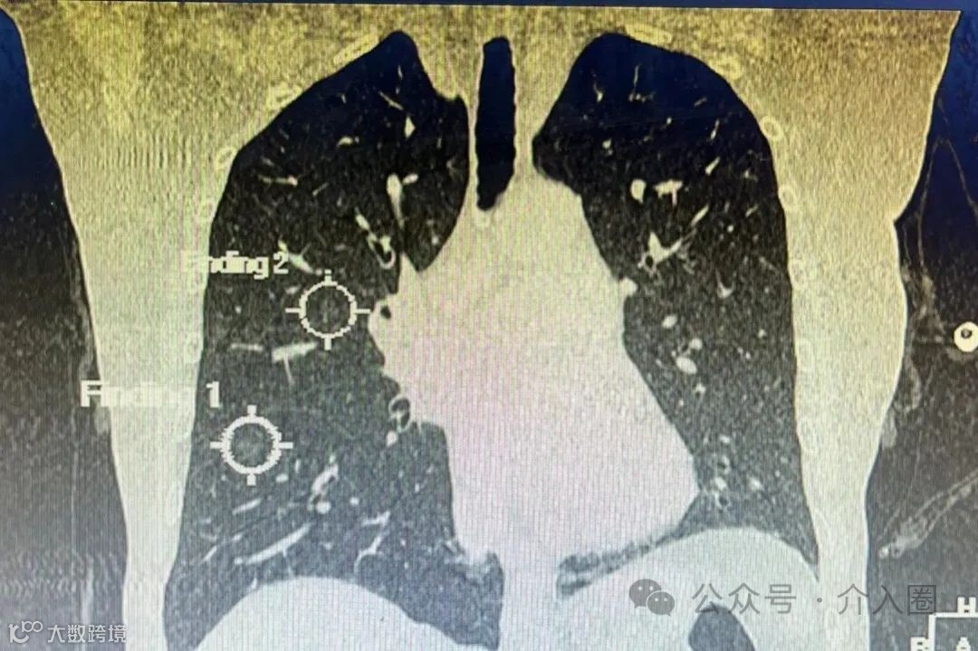 患者情况:69岁,女性,出现胸闷偶伴咳嗽,持续至今仍未好转,影像检查结果提示,患者双肺多处有磨玻璃样结节,直径近1厘米。
