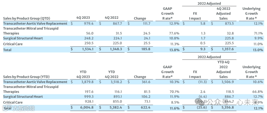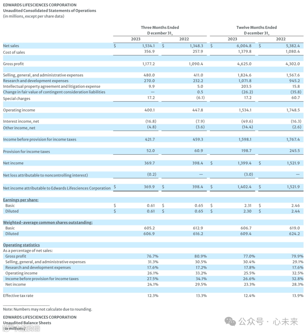 爱德华生命科学首席执行官 Bernard Zovighian表示:“2023 年,我们的团队在为患者推进转化疗法方面取得了重大进展,同时实现了强劲的财务业绩。全年销售额增长了 12%,其中四个产品组均实现了令人瞩目的增长。在我们广泛的创新疗法组合推动下,我们以强劲的势头结束了这一年。”