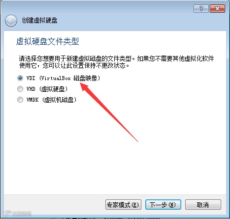 5、选择虚拟文件类型