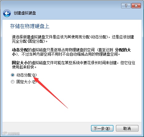备注:动态分配要好些,是根据虚拟机的实际大小来调整。