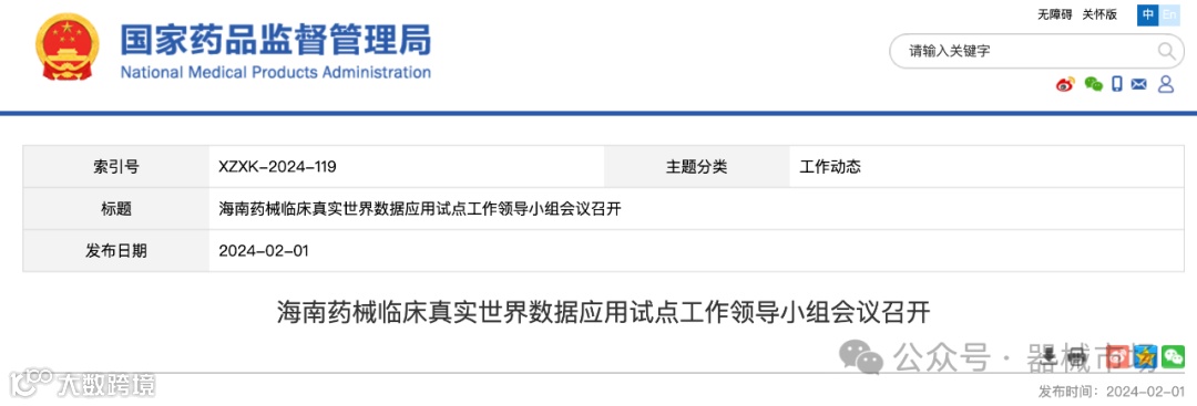1月31日,国家药监局和海南省人民政府以视频方式联合召开海南药械临床真实世界数据应用试点工作领导小组第五次会议,总结2023年试点成效,研究部署2024年工作。海南省人民政府副省长谢京,国家药监局党组成员、副局长徐景和出席会议并讲话。