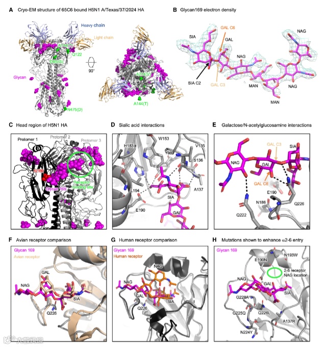 图2:H5N1(2.3.4.4b分支)血凝素三聚体冷冻电镜结构