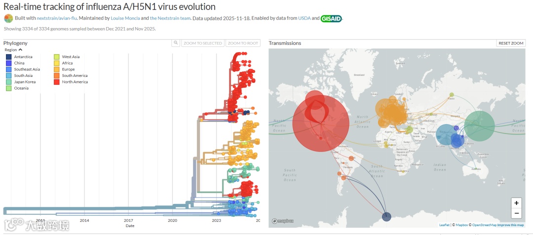 图1:2025年11月欧洲H5N1暴发(红点)与候鸟迁徙路径(数据来源:USDA & GISAID)